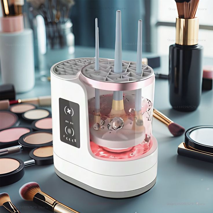 Our Electric Brush Cleaner deep cleans and dries your brushes in seconds no mess, no waiting.