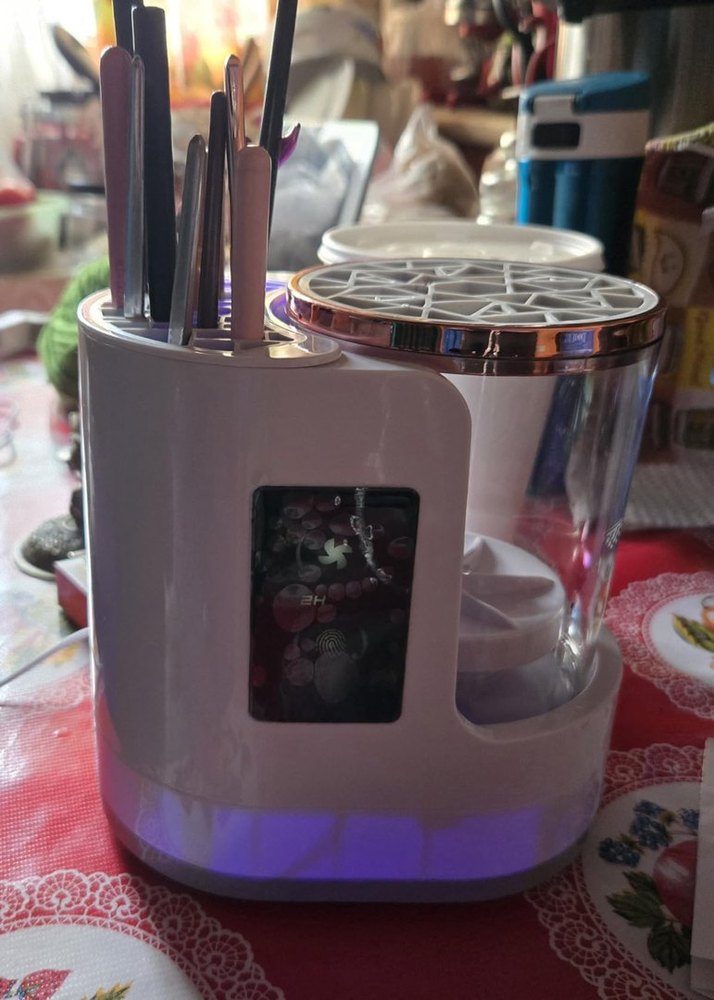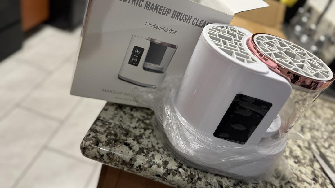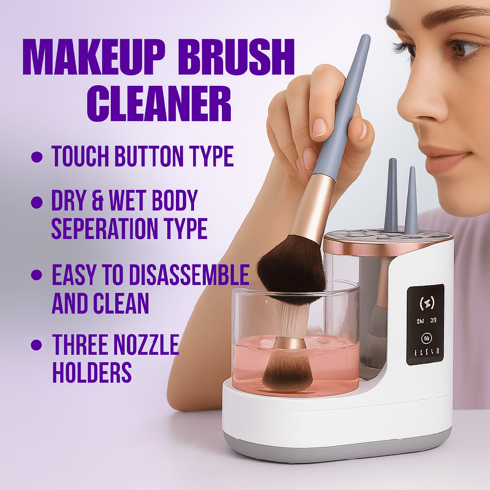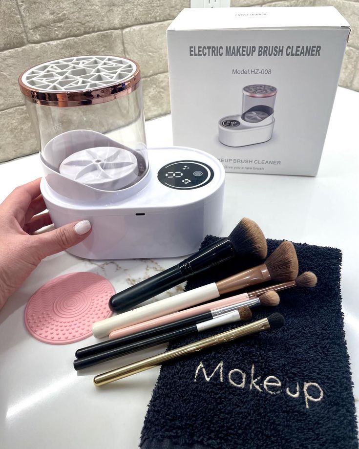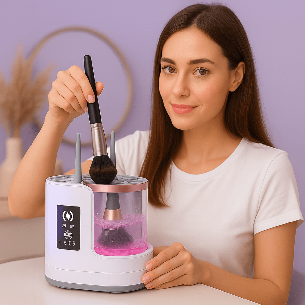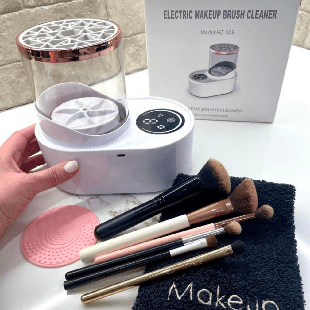 Our Electric Brush Cleaner deep cleans and dries your brushes in seconds no mess, no waiting.