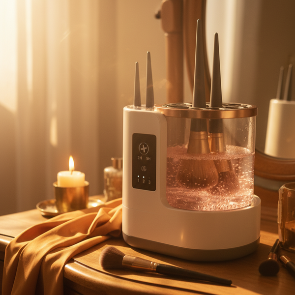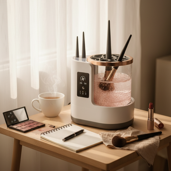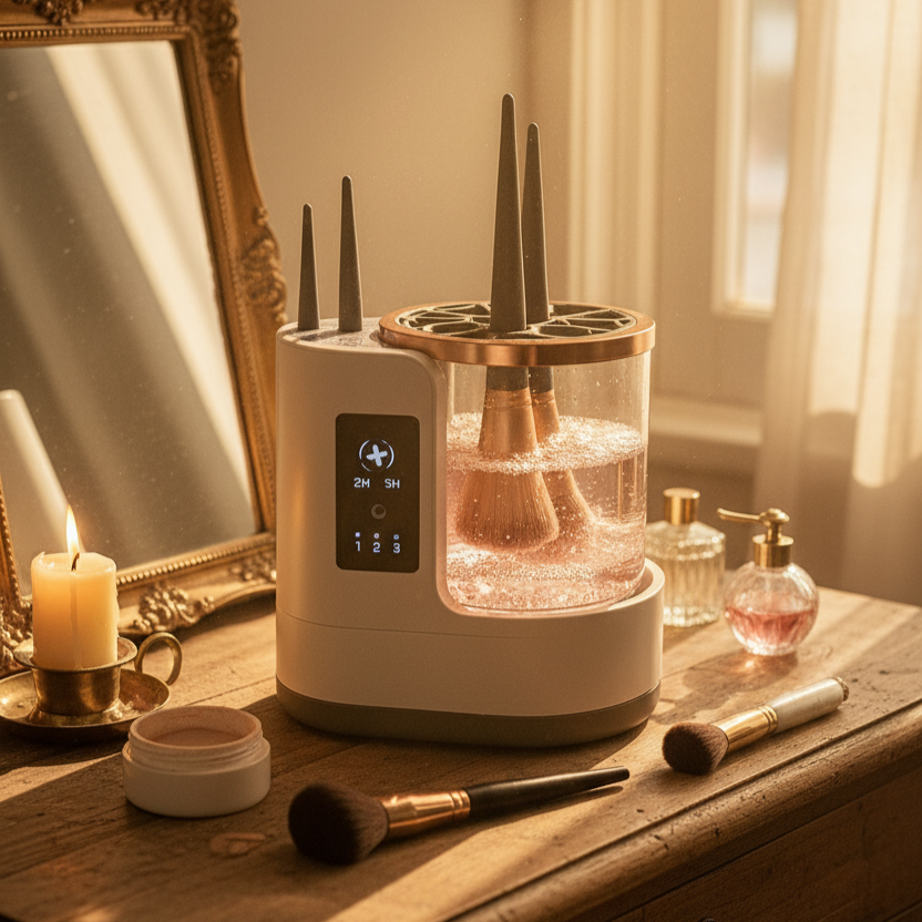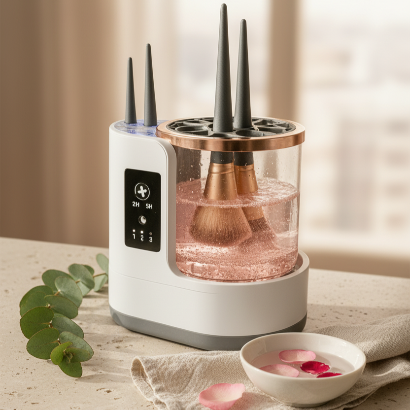 It uses high-speed spinning technology to clean and dry your brushes in seconds. Just attach your brush to the holder, dip it in the cleaning solution, and power it on the spinning motion removes makeup residue and dries the brush quickly.